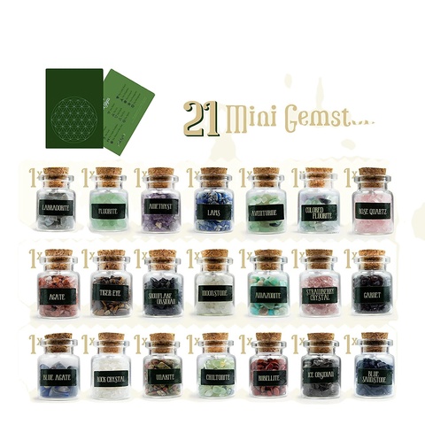 Büyü kavanozlarında cadılık malzemeleri 21 Set Mini gerçek çakra kristalleri ve şifa taşları cadılık kiti
